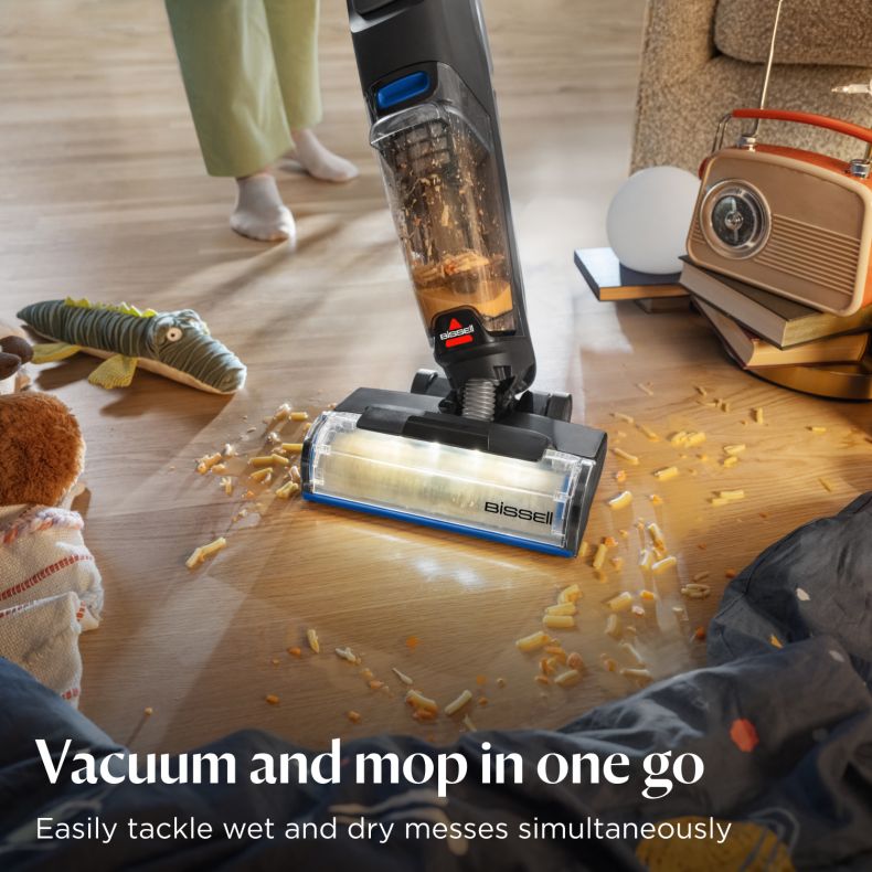 Save time with the BISSELL® CrossWave® OmniFind™ Select cordless all-in one multi-surface cleaner by combining vacuuming and mopping into one easy step! Designed for homes with pets the FurFinder™ headlights, with patented high and low-beam technology, make pet hair and dirt easy to see.