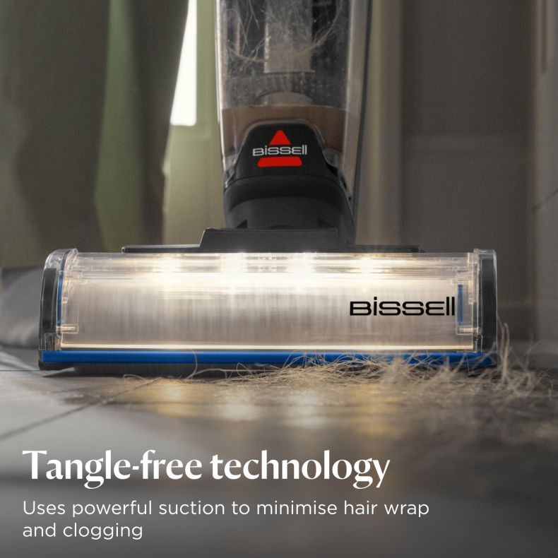 Cordless tangle-free cleaning minimizes hair wrap and clogging.