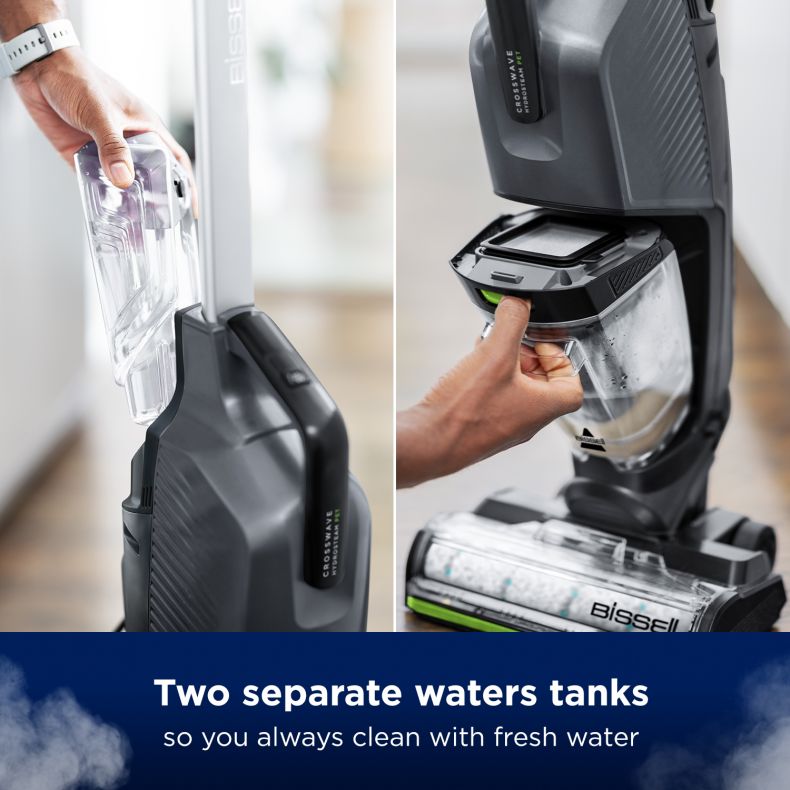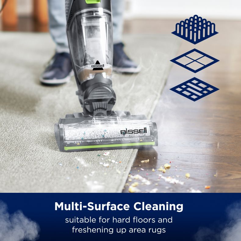 BISSELL® CrossWave® HydroSteam™ Pet Multi-Surface cleaner is designed for homes with pets. It vacuums, washes and dries in one go, plus it has an on-demand steam mode for ultimate cleaning results. Proven to clean sticky, tough messes, this machine uses a combination of specialized cleaning formula with the power of HydroSteam™ Technology to clean across multiple surfaces included sealed hard floors and area rugs.