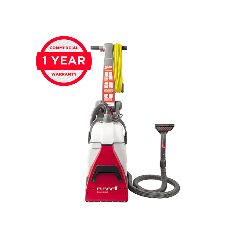 The BISSELL Commercial DC100 carpet & upholstery washer achieves a whole new level of clean with its powerful motors and extra large brush roll that pulls out deep down dirt. It’s made of durable, high quality materials and features robust workmanship from top to bottom.
