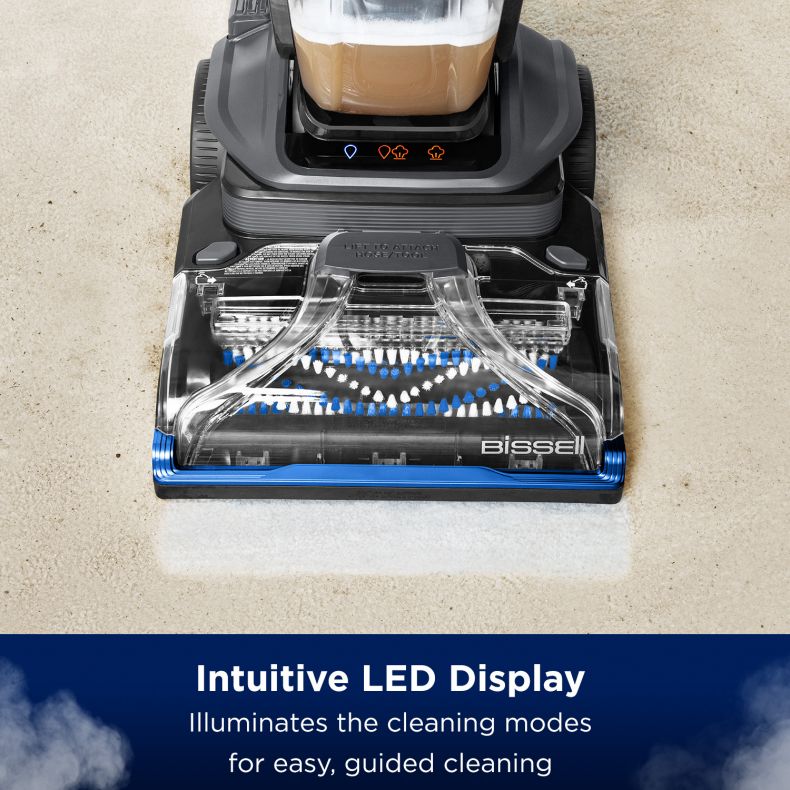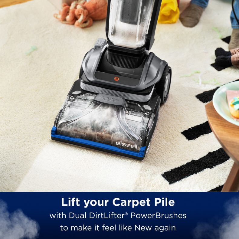 When used in the steam modes, a combination of steam vapor, water and specially formulated BISSELL® cleaning solution penetrates deep into the fabric together with the abrasion of two Dirtlifter Powerbrushes & 1300W suction extracts stains and messes straight into the dirty water tank, so it is gone for good.