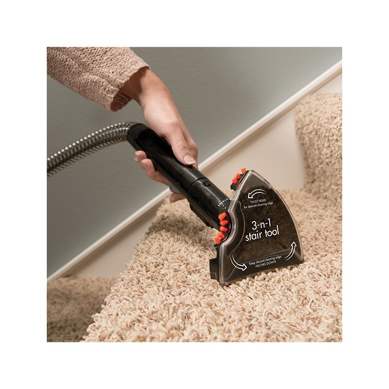 The Spot & Carpet Cleaning 3-in-1 Upholstery tool can be attached to the hose of your BISSELL carpet cleaner or spot cleaner. The three different sections can be used to ensure you can remove dirt or stains from hard-to-reach areas.