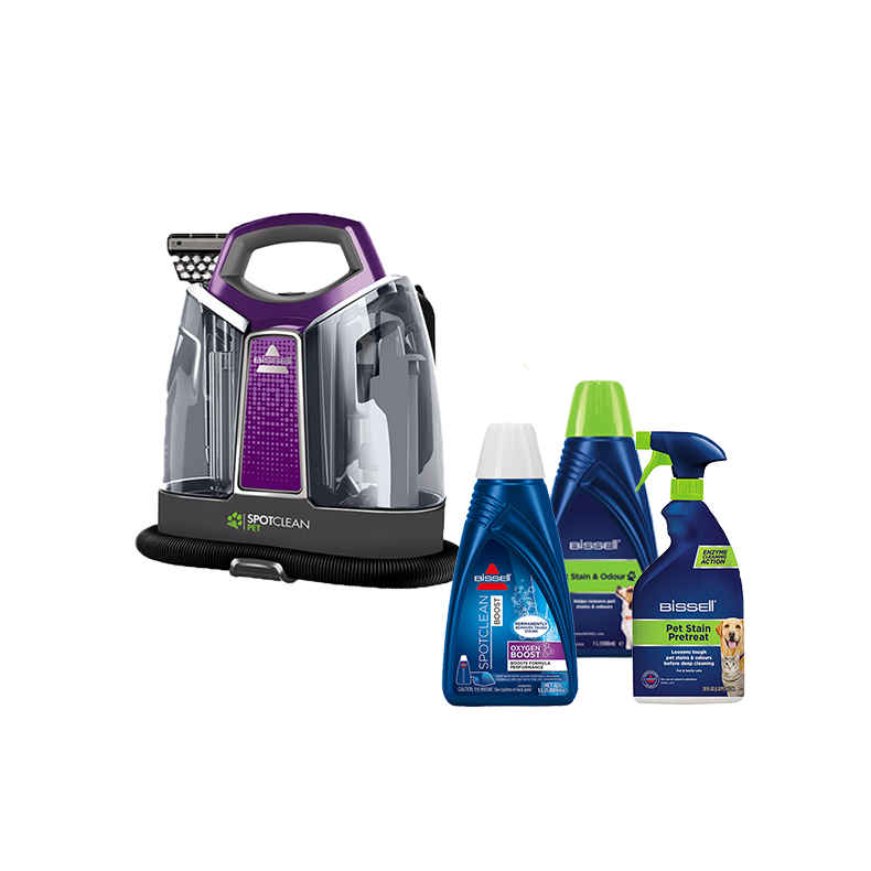 The BISSELL® SpotClean Pet ProHeat Bundle is designed for pet owners in mind, combining our Pet Compact Cleaner, pet formula and pet PreTreat.