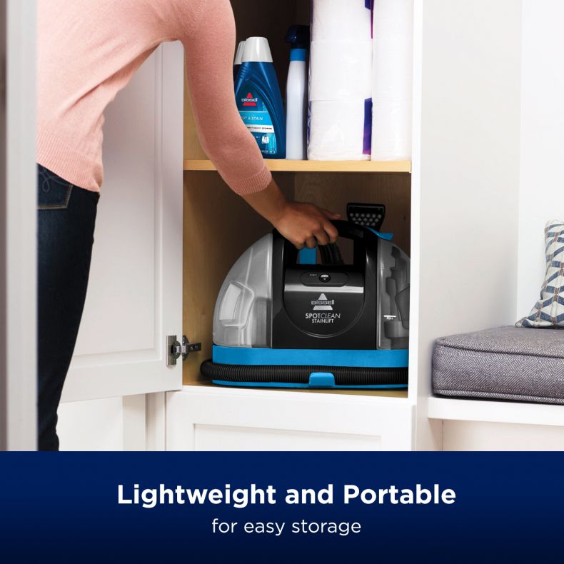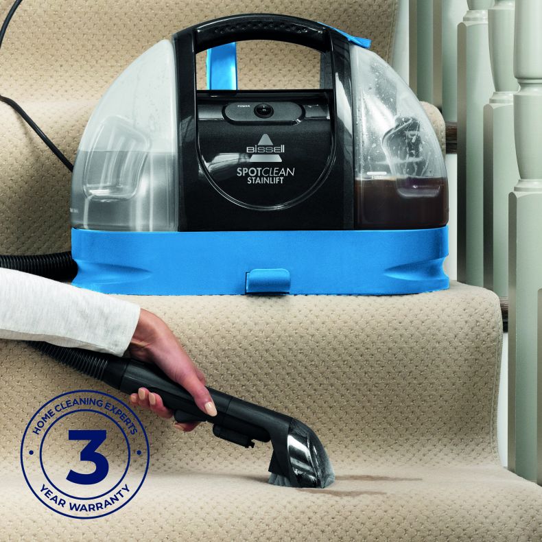 Perfect for everyday use, the BISSELL® SpotClean® StainLift portable carpet and upholstery cleaner is a powerful machine packed into a convenient easy-to-carry design. By combining superior suction, scrubbing action and specially formulated BISSELL® cleaning solution the SpotClean® StainLift can tackle messes from muddy paw prints to split drinks. Perfect for cleaning upholstery, area rugs, stairs and car interiors, this versatile machine comes with a specialised tough stain tool to tackle everyday spills and set in stains. The large capacity tanks mean less refilling and emptying whilst cleaning.